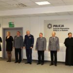 Kapelan mazowieckiej Policji – ksiądz kanonik Mirosława Dragiel odczytał słowa Ewangelii wg św. Łukasza – fragment o narodzeniu Jezusa Chrystusa i wraz kapelanem Policji w Płocku księdzem kanonikiem Jerzym Ławickim poświęcili opłatek, którym wszyscy się wspólnie połamali.