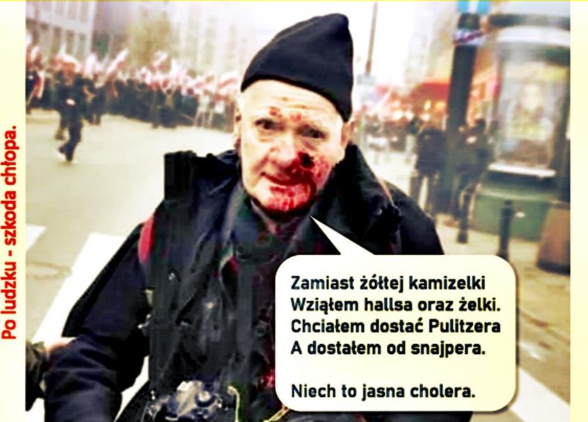 Obrażenia odniósł też sędziwy fotoreporter tygodnika Solidarność. Po tym w mediach rozpętała się burza. Nagle każdy komentator i byle pismak poczuł się nie dość, że ekspertem od procedur policyjnych, to jeszcze liderem krucjaty przeciw policyjnej bezkarnej agresji.